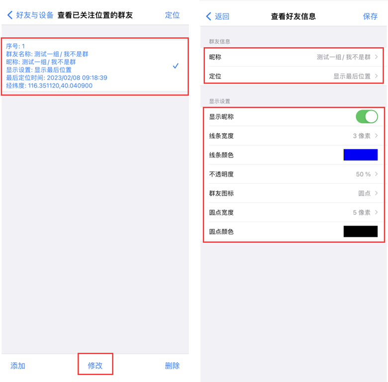 假设群友A分享位置,群友B查看群友A的位置及轨迹。