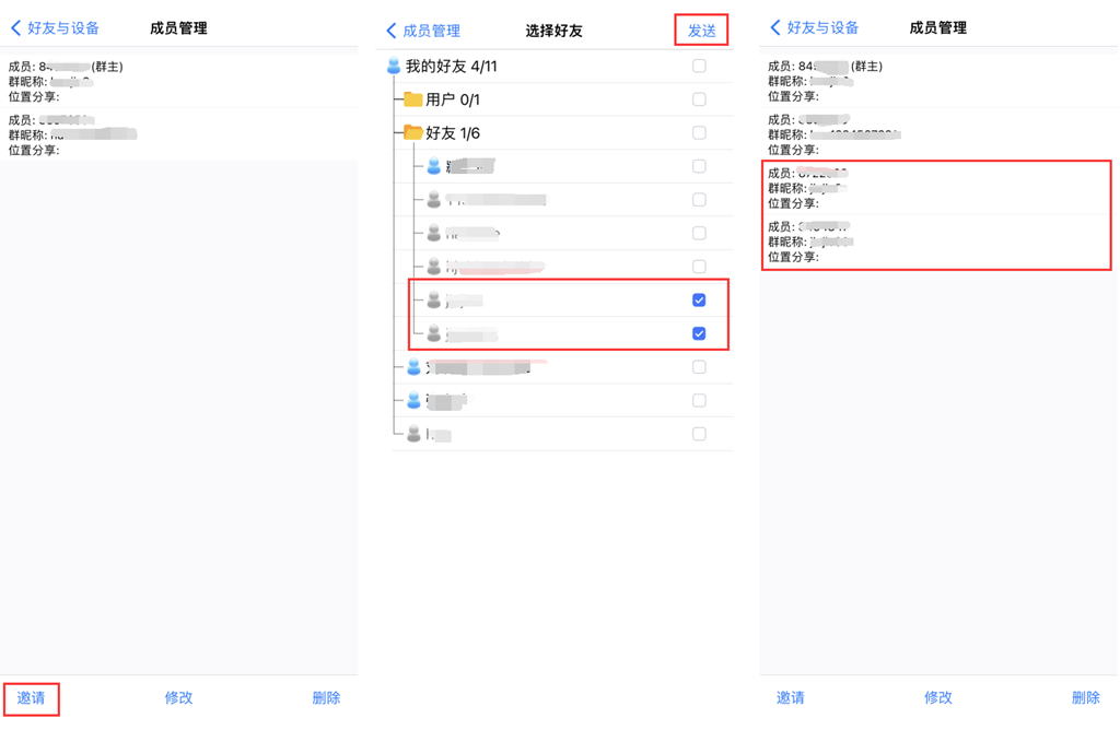 在[成员管理]页面, 群主可以邀请奥维好友加入该群。