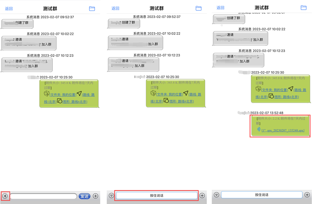 对于语音,在会话界面,点击左下角的9按钮,按住说话,录音完成后释放,即可发送语音消息。