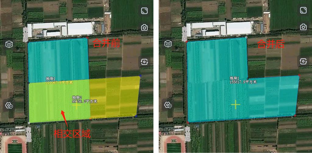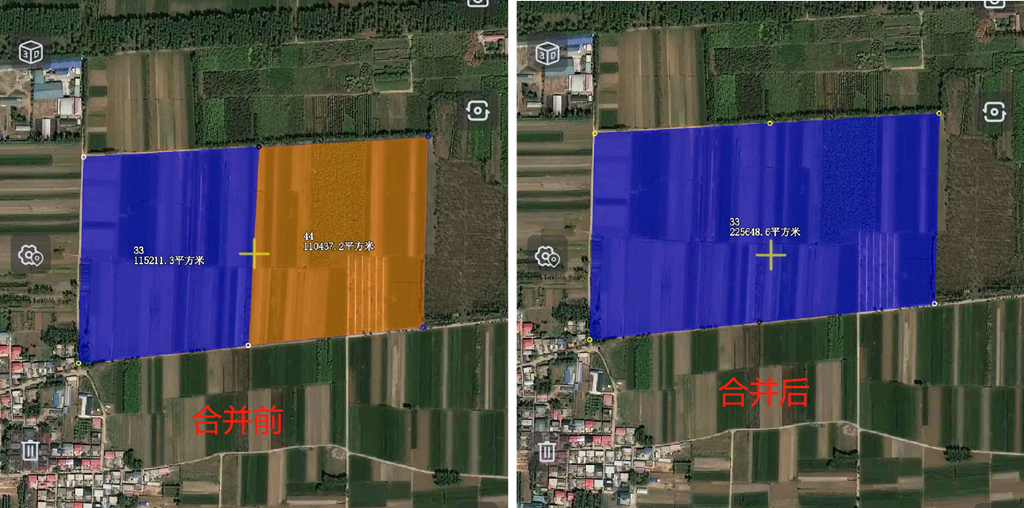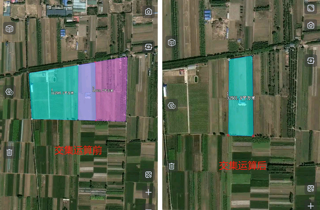 在奥维互动地图中,可以实现将一个图形分割成两个图形,也可以对多个符合相应条件的图形进行合并、交集、差、异或拓扑运算。