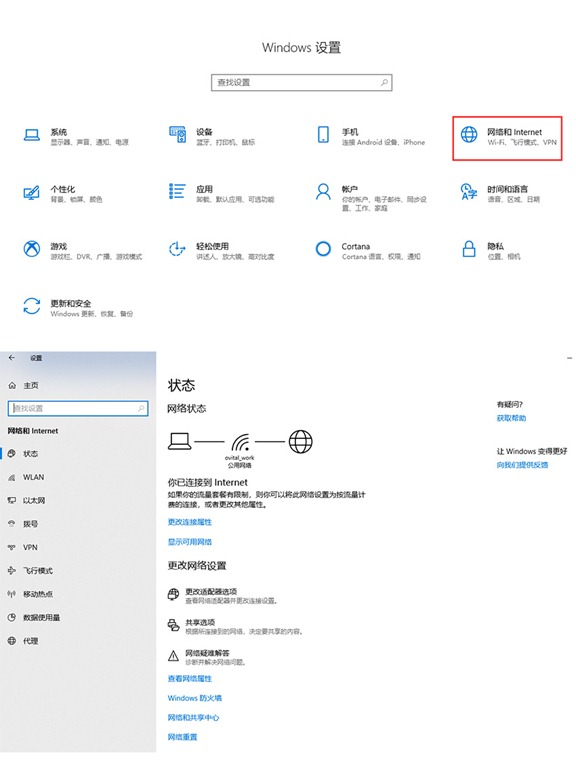 在【Windows设置】页面中,点击【网络和Internet】,进入【网络和Internet】页面。