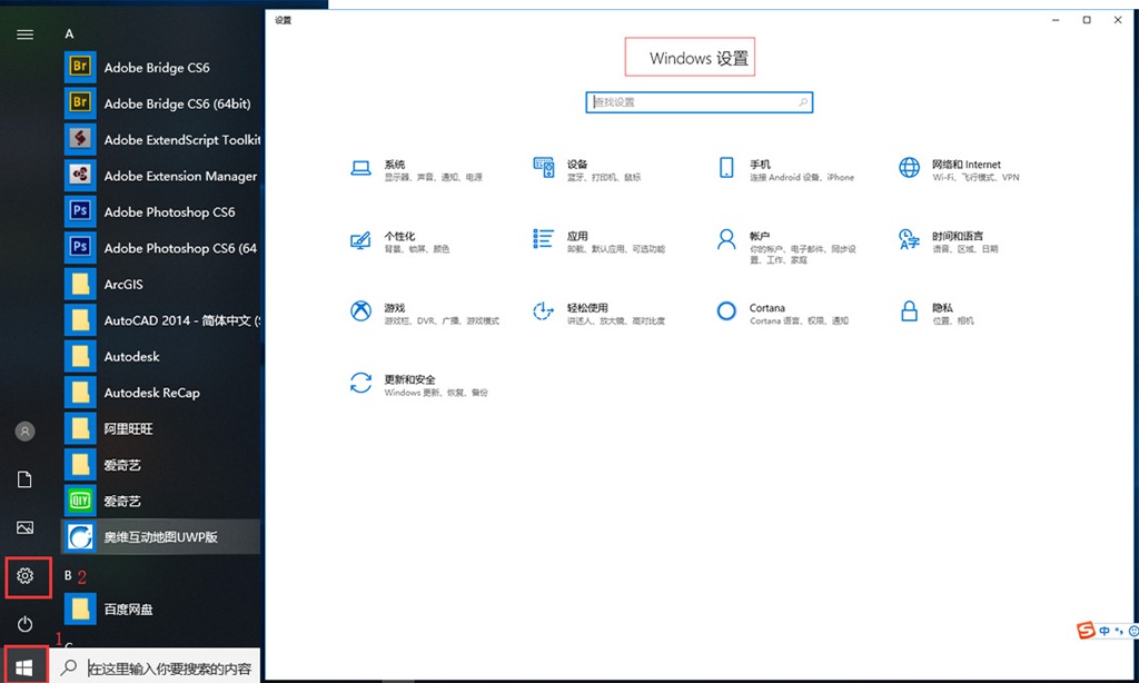 点击“开始”按钮 ,再点“设置”按钮 ,进入【Windows设置】页面,如下图: