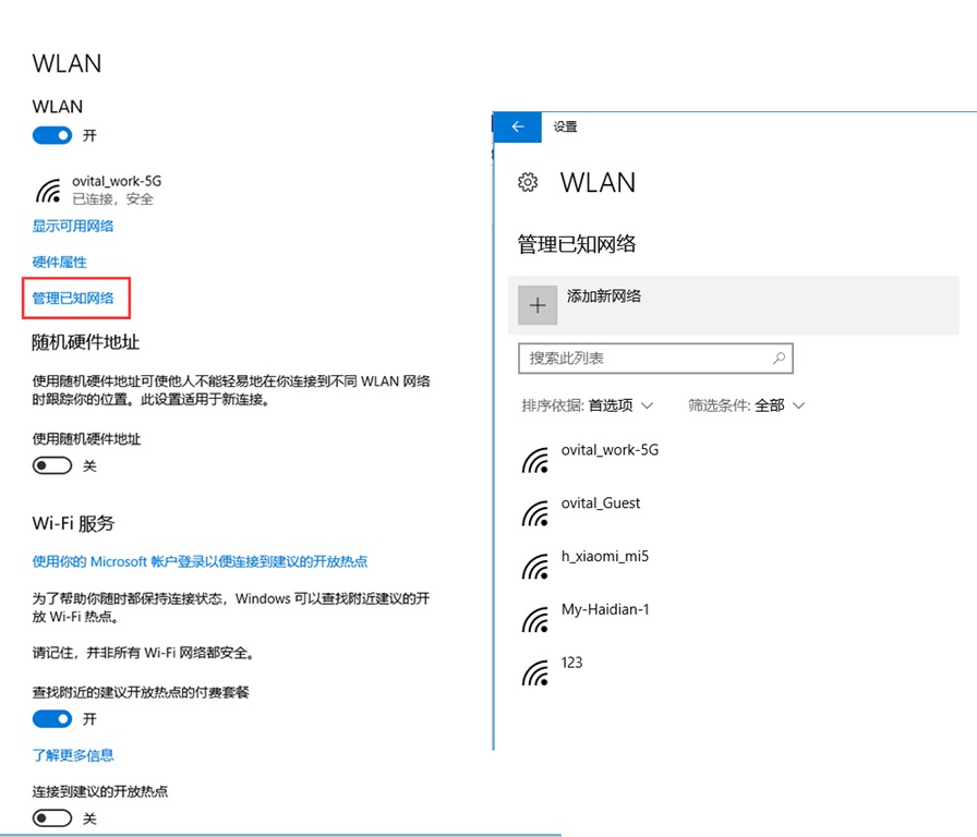 4、在【WLAN】栏中,点击【管理已知网络】,进入【WLAN】页面。