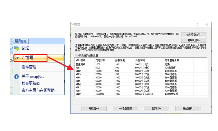点击【帮助】下拉菜单,点击【VIP管理】,进入【VIP管理】窗口。