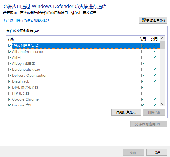 3、在列表中查找奥维应用程序OMapService.exe,如果没有则点击右上角的“更改设置”然后点击“允许其它应用”添加应用程序到列表。