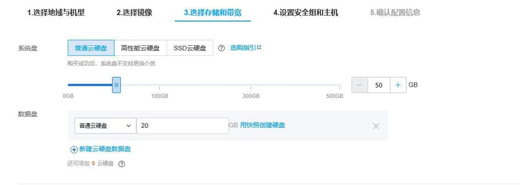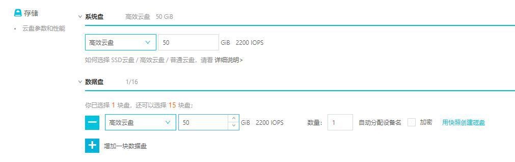 存储:系统盘,免费赠送;本地磁盘,用户可根据实际数据情况选择,建议选择50G及以上。