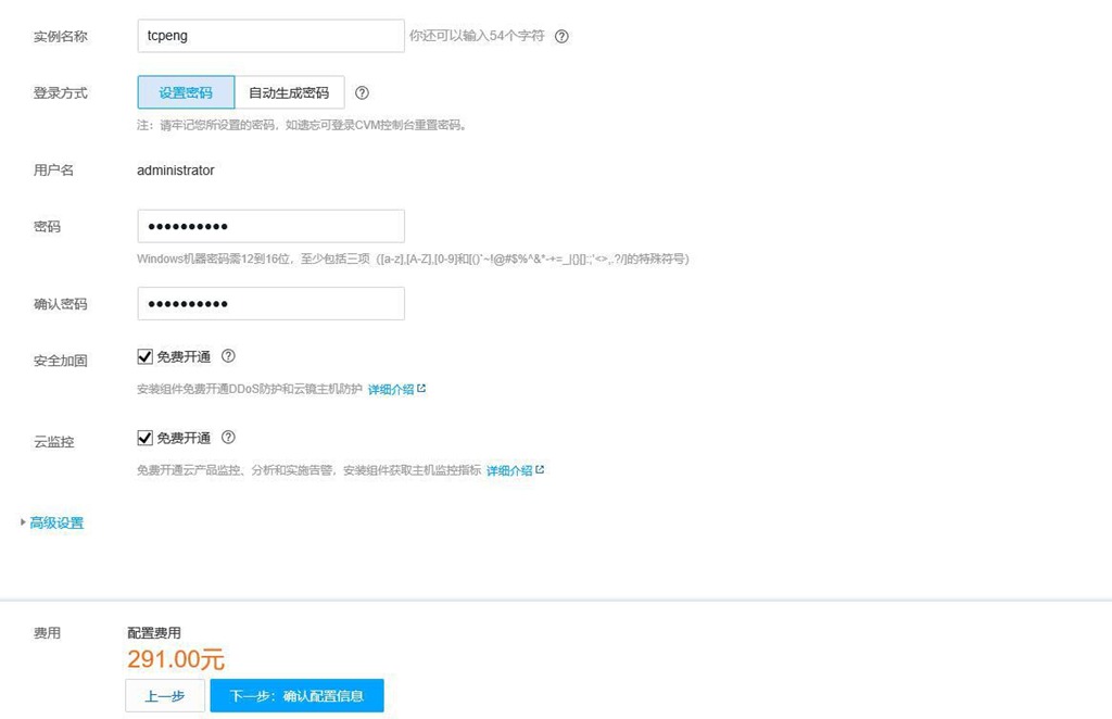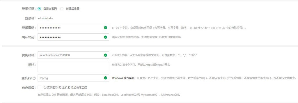 系统信息:设置实例名称、管理员密码等信息,此处管理员用户名和密码用于远程登录云主机。