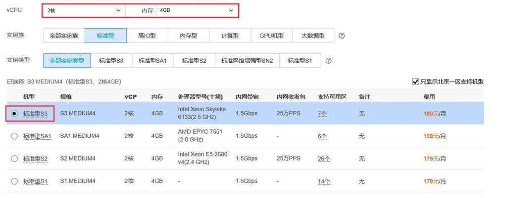 点击【云服务器BCC】,点击【创建实例】,进入[选择云服务器]页面。
