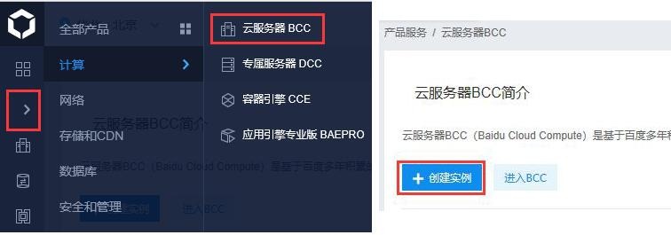 进入百度云官网,点击【产品】,点击【云服务器BCC】点击【立即购买】,可以点此快速进入