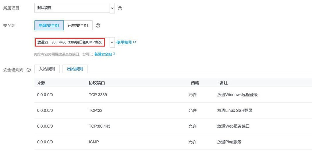 网络:选择网络类型,设置安全组,具体设置如下图即可。