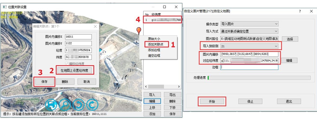 已知需要导入的图片含有左上角和右下角经纬度信息,我们可以采用该方式导入。采用该方法导入,可以精准的与实际位置匹配。