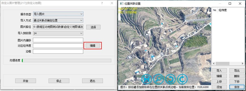 在奥维中,用户可通过多种方式导入航拍图,如通过经纬度确定范围导入、通过tiff/img文件内部坐标信息确定范围导入等,这些方式的应用条件不一致,我们将在后面对应用条件进行说明,用户需要根据实际情况选择合适的方式导入。
