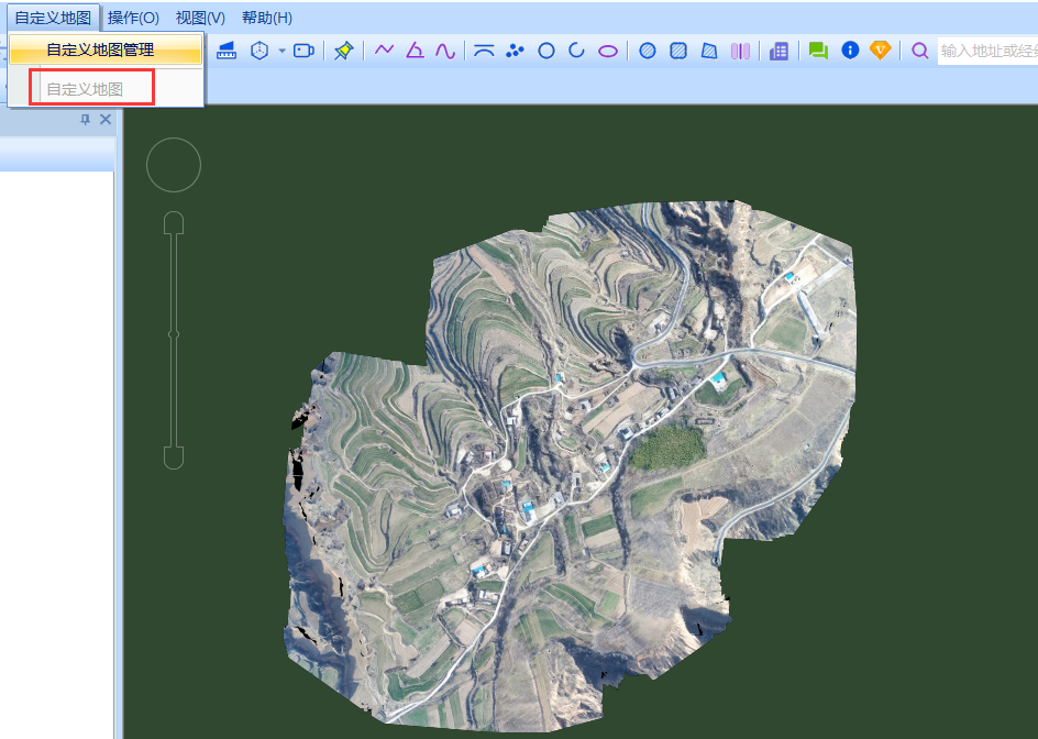 运行电脑端奥维互动地图,在菜单栏中点击【自定义地图】下拉菜单,点击【自定义地图管理】,打开【自定义地图管理】窗口。