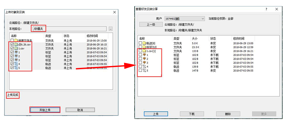 若需要选中较多的轨迹点条目,用户可先勾选不需要导出的轨迹点,再点击【反选】按钮,选中需要导出的轨迹点。