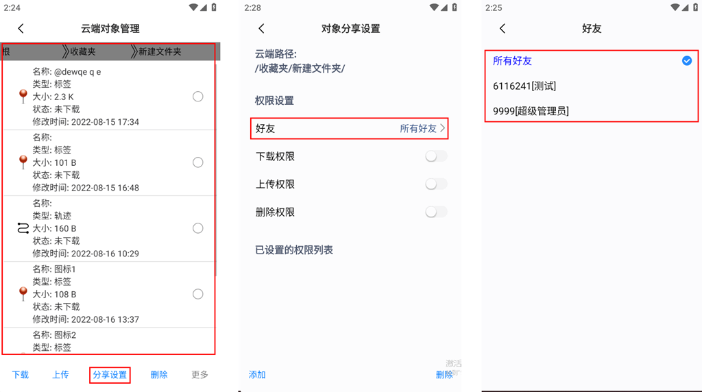 在【位置采集设置】窗口中,点击【历史位置分享】下拉框,可选择【不分享历史位置】【分享给所有好友】或者【分享给指定好友】;若选择【分享给指定好友】,用户需要指定好友,假定分享给用户B,如下图。