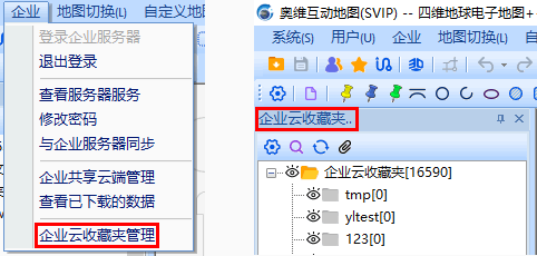 企业云收藏夹管理,是奥维企业版最重要的功能模块。它通过企业服务器这一桥梁将接入企业服务器的客户端用户联系在一起,旨在实现各客户端用户使用同一个“云收藏夹”,达到双向发布、协同设计、自动同步的目的。