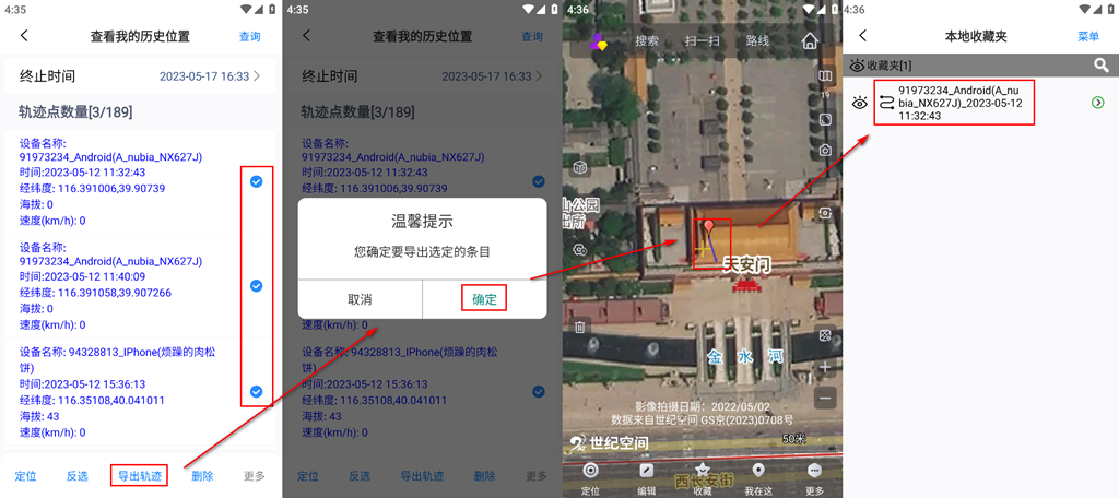 提示:导出轨迹功能操作请参考本章《2、查看我的历史位置》部分。