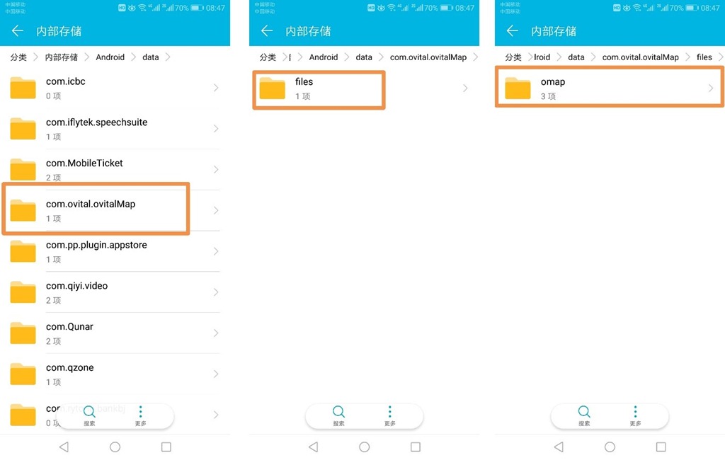 安卓系统奥维根目录:Android/data/com.ovital.ovitalMap/files/omap