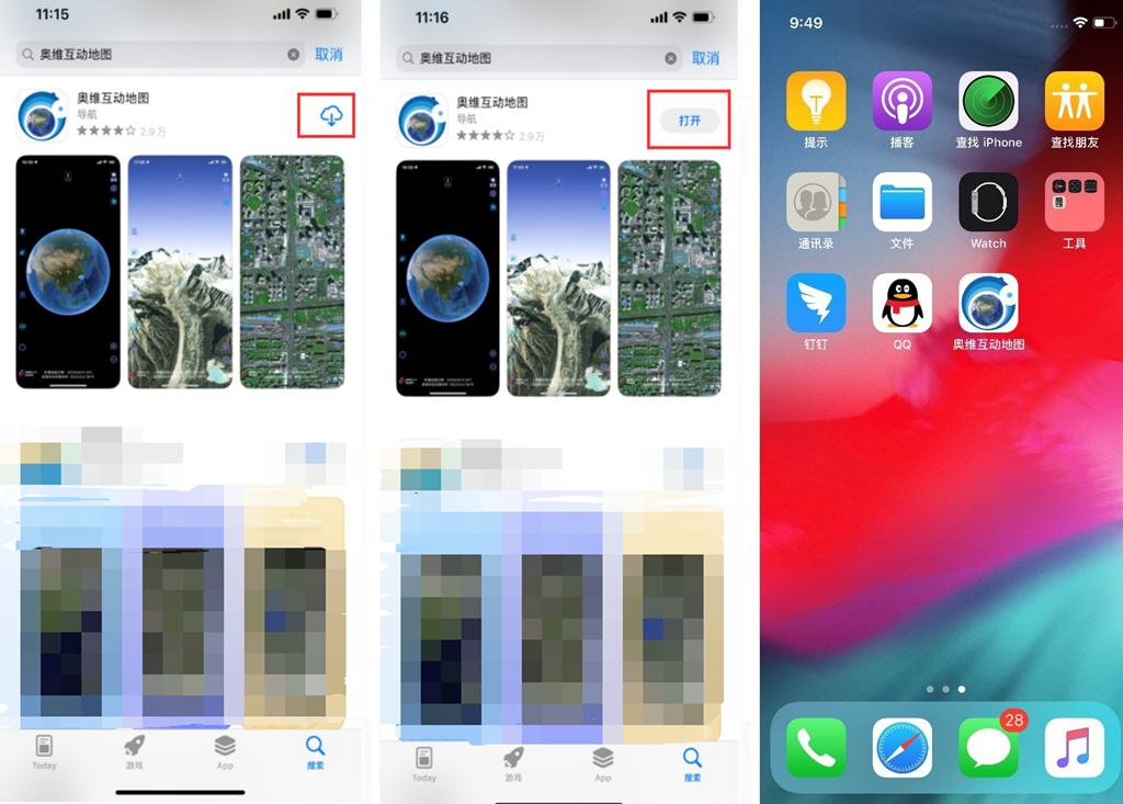 将数据传输到手机/平板上后,启动奥维程序。
