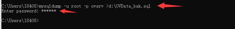 命令:mysqldump -u root -p ovsrv >d:\OVData_bak.sql
