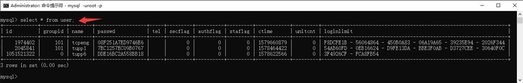导入完成后,您可以任意选择几个表,比对Windows和CentOS上的数据。本文查看表【user】中的数据,该表存储的是企业用户。