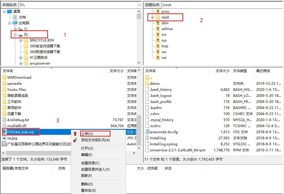 选中需要上传的文件,点击鼠标右键,点击【上传】,即可。
