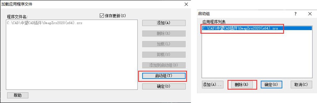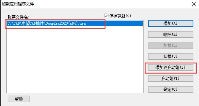 在[加载/卸载应用程序]窗口,可设置自启动插件。操作:内容→添加→选择插件版本→打开→关闭,即可。