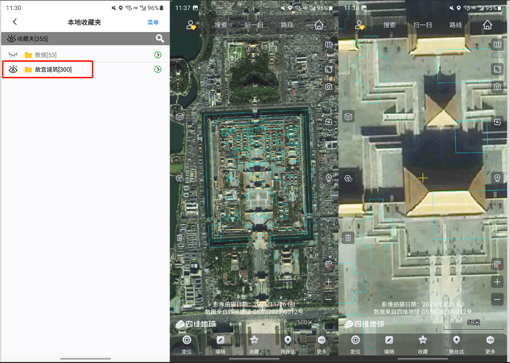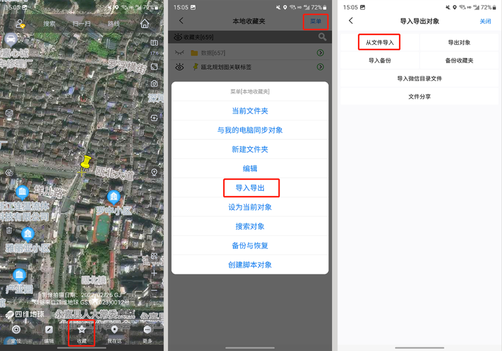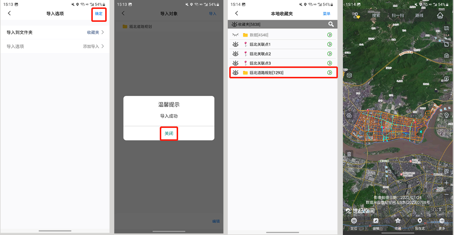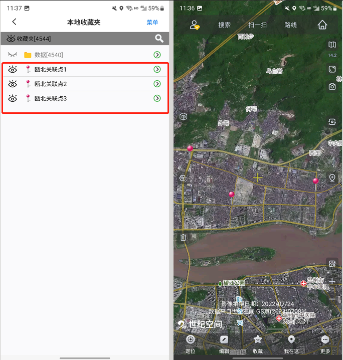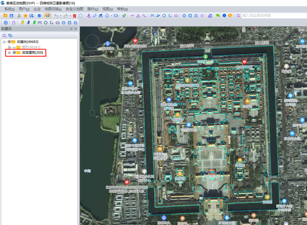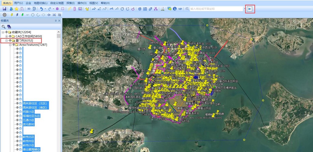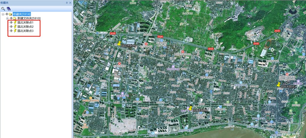 导入完成后,数据会显示在地图上,保存在收藏夹中。