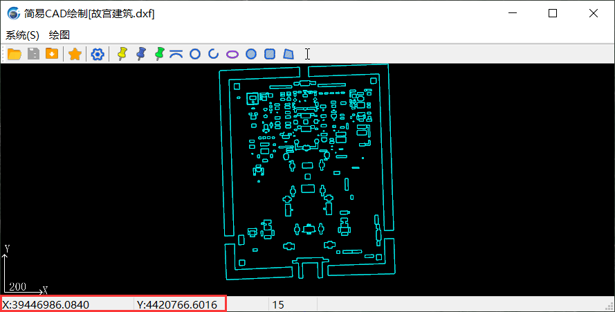 这里我们也可以用奥维的简易CAD窗口打开dxf/dwg文件查看平面坐标,关于简易CAD的功能介绍请参考帮助文档《简易CAD绘制功能使用说明》。