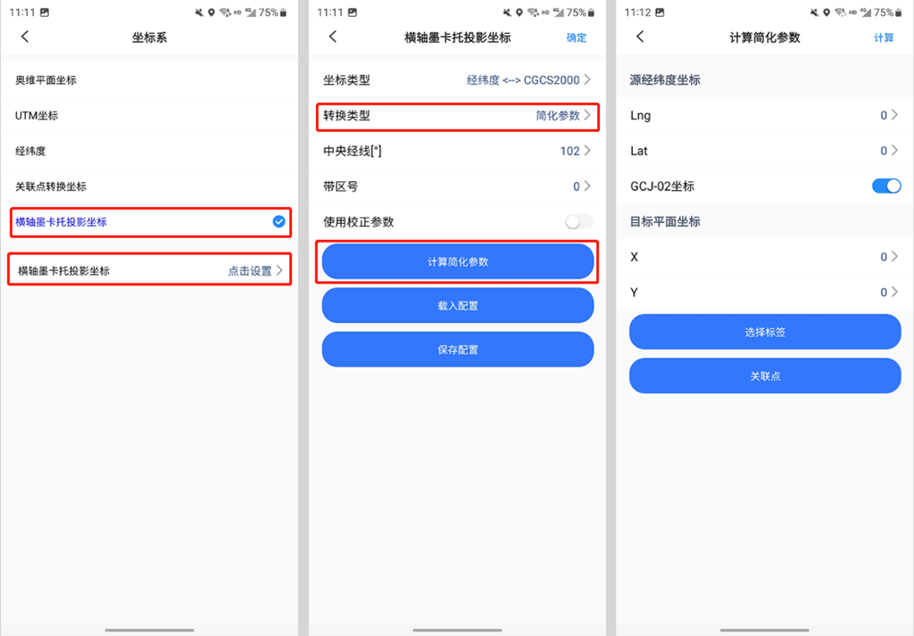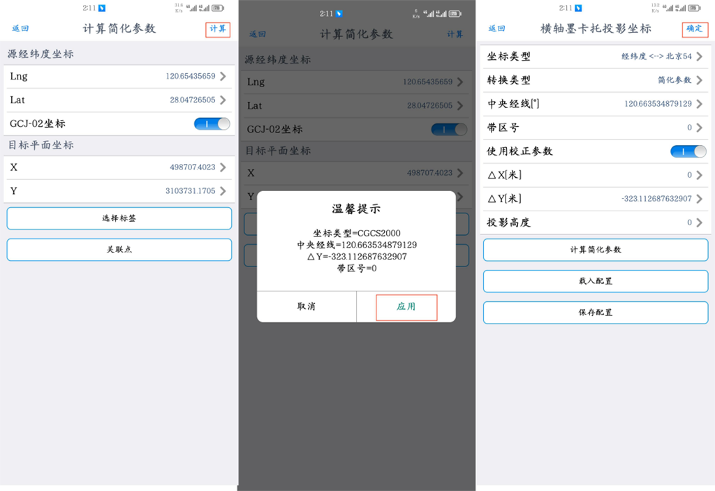 对于简化参数,用户不必关注计算出来的坐标类型、中央经线、△Y以及带区号,这些参数是系统自动按照最小误差确定的,没有实际意义。