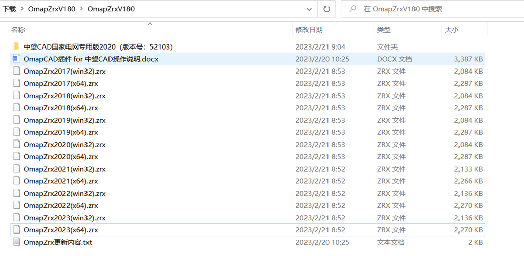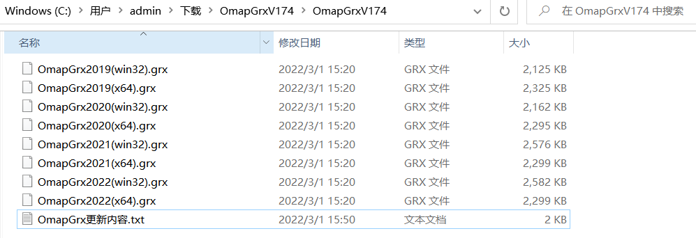 您下载好软件压缩包后,解压,可以看到有2019和2022等版本的OmapCAD插件。