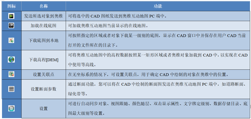 OmapCAD插件,集合了发送所选对象到奥维、加载在线底图、下载底图到本地、下载高程[DEM]、设置关联点、设置断面参数、设置等功能。