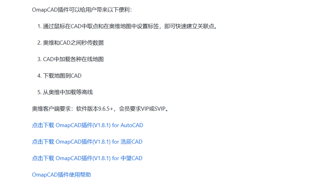 OmapCAD插件 for 浩辰CAD用于浩辰CAD和奥维互动地图之间的协同设计,支持的软件版本及会员等级如下: