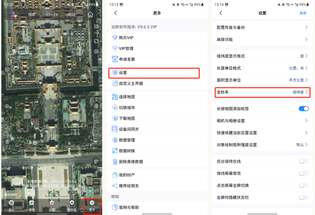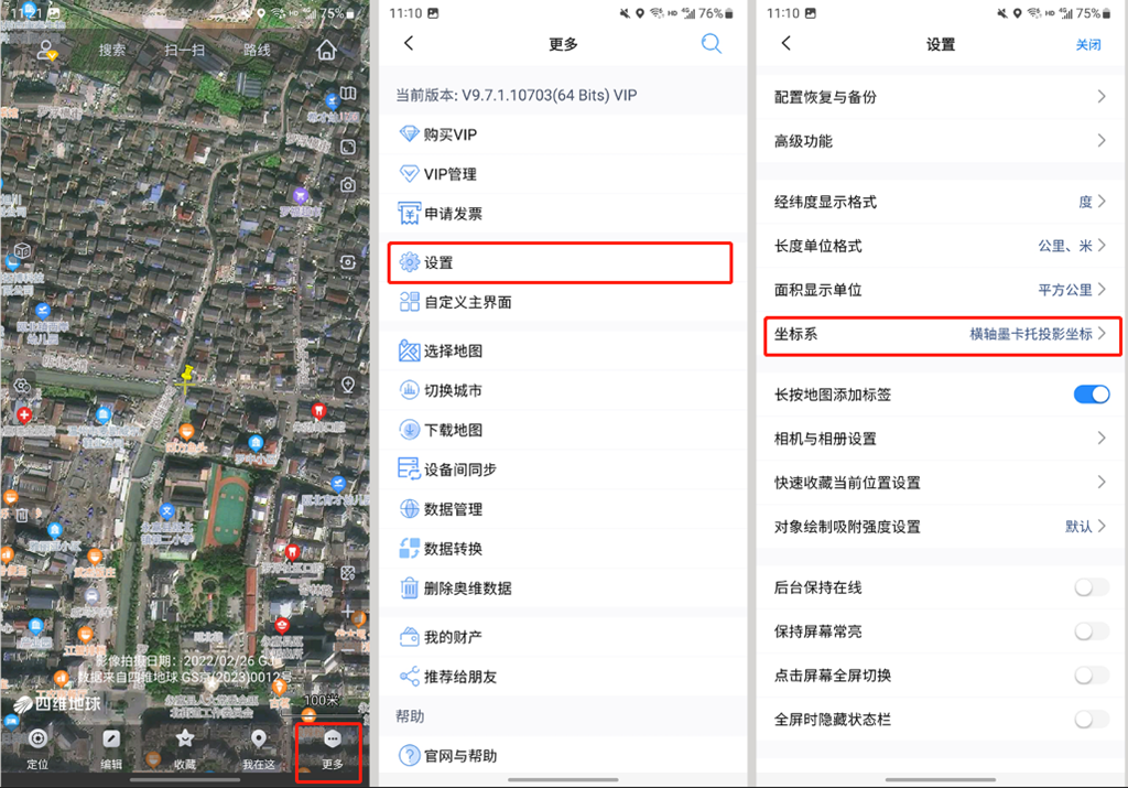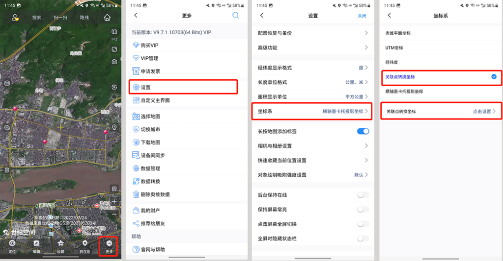 创建完三个关联标签后,在手机端主界面点击【更多】→【设置】→【坐标系】,选择【关联点转换坐标】,点击设置。