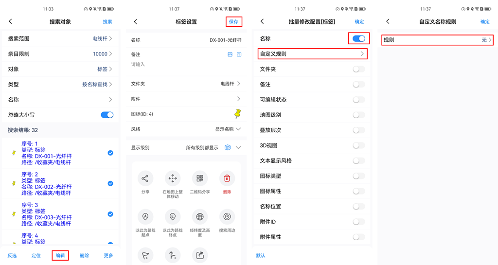 在奥维中,用户可对数据的属性进行批量修改,如标签的图标、轨迹的线条颜色和宽度、图形的填充颜色和不透明度等。本文以修改图形的填充颜色为例,其他属性的批量修改操作一致。